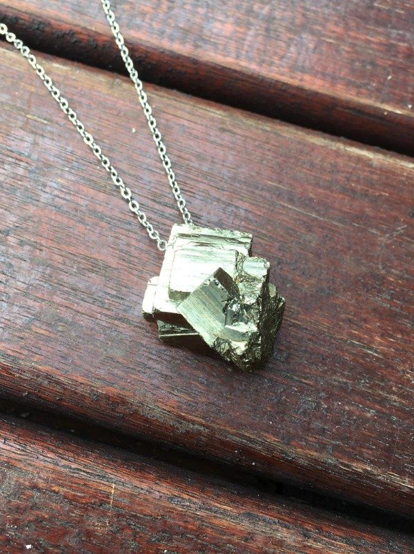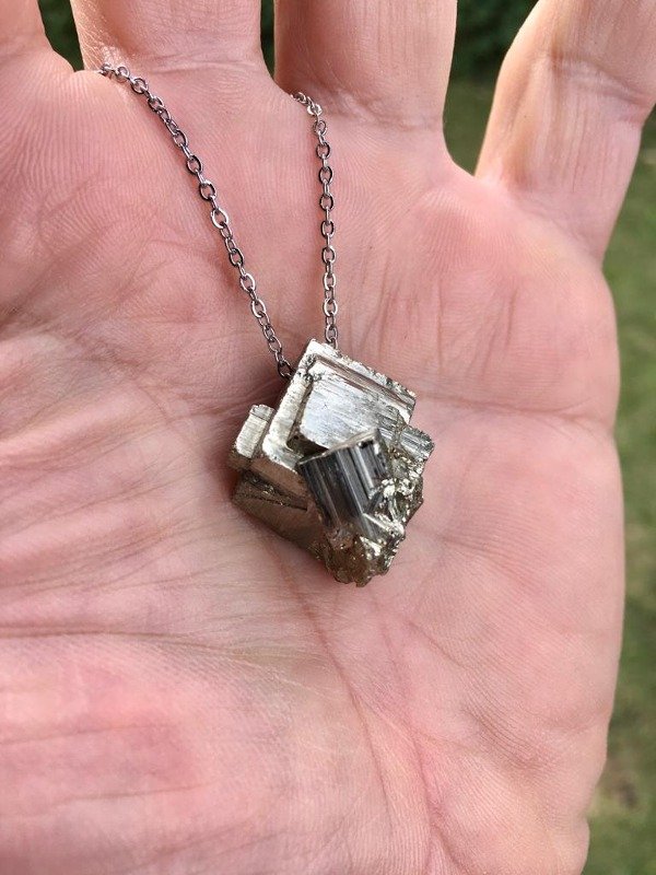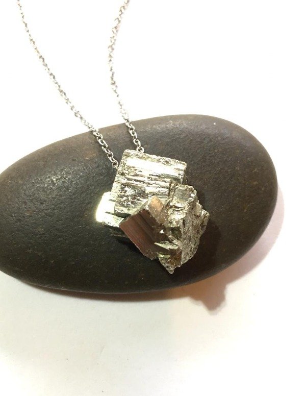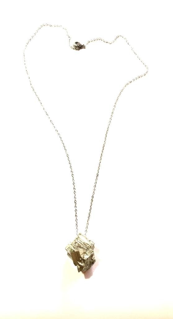 Collar piedra natural Pirita en bruto combinada con cadena en acero