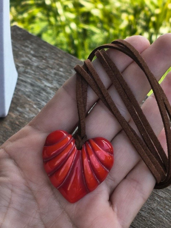 Collar dije corazón rojo en resina con tiento gamuza para colocar como prefieras usarlo.
