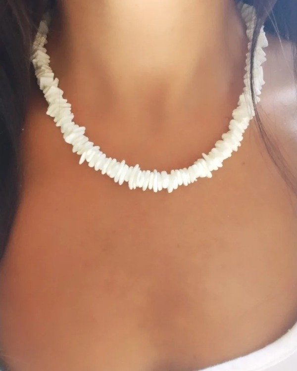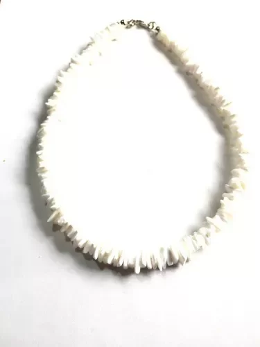 Collar escalla caracol blanco , enhebrado sobre tanza de acero