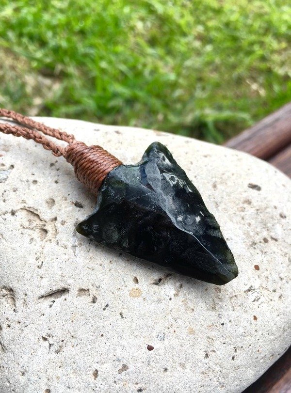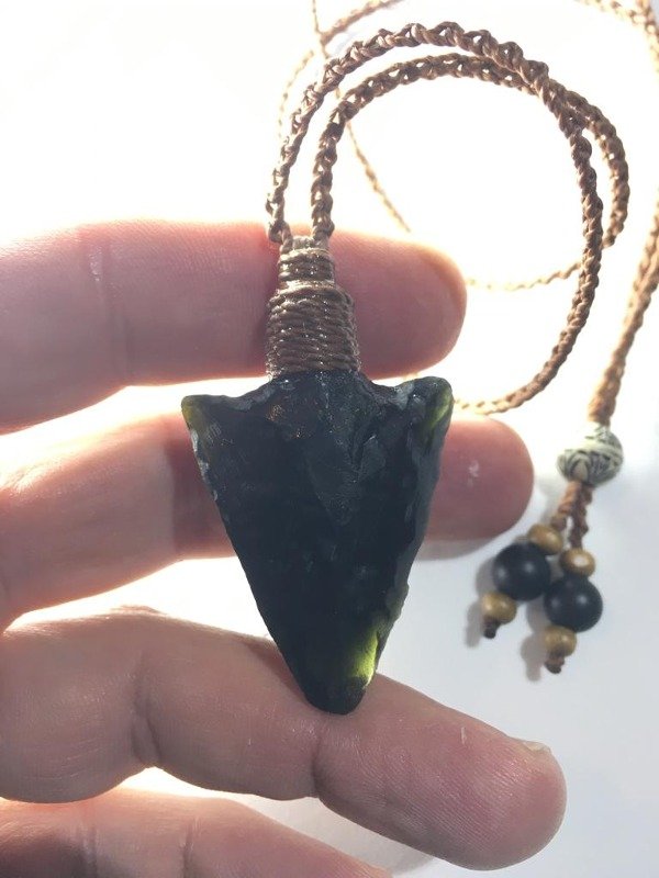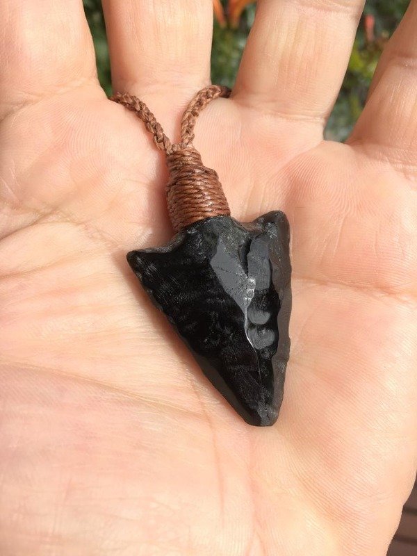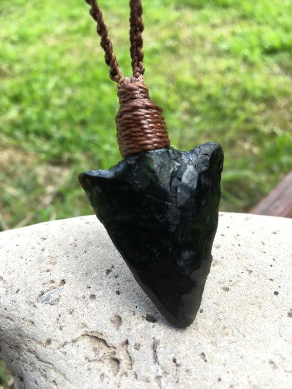 Collar Punta de flecha en piedra Obsidiana negra.