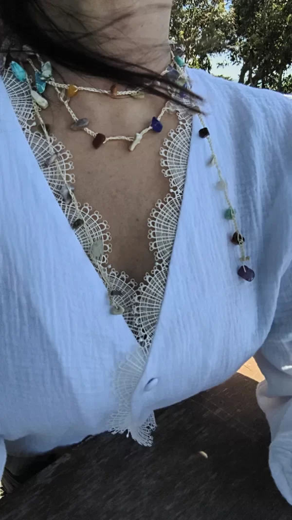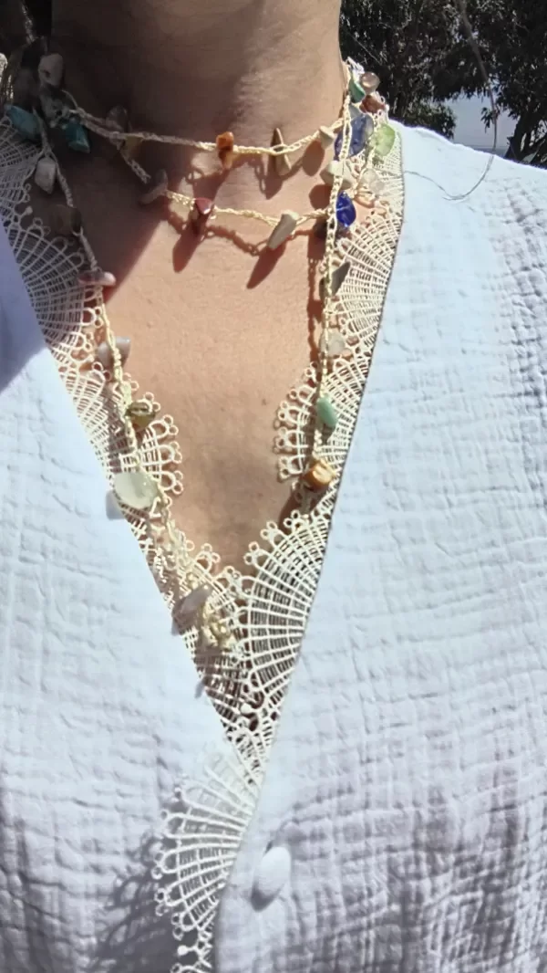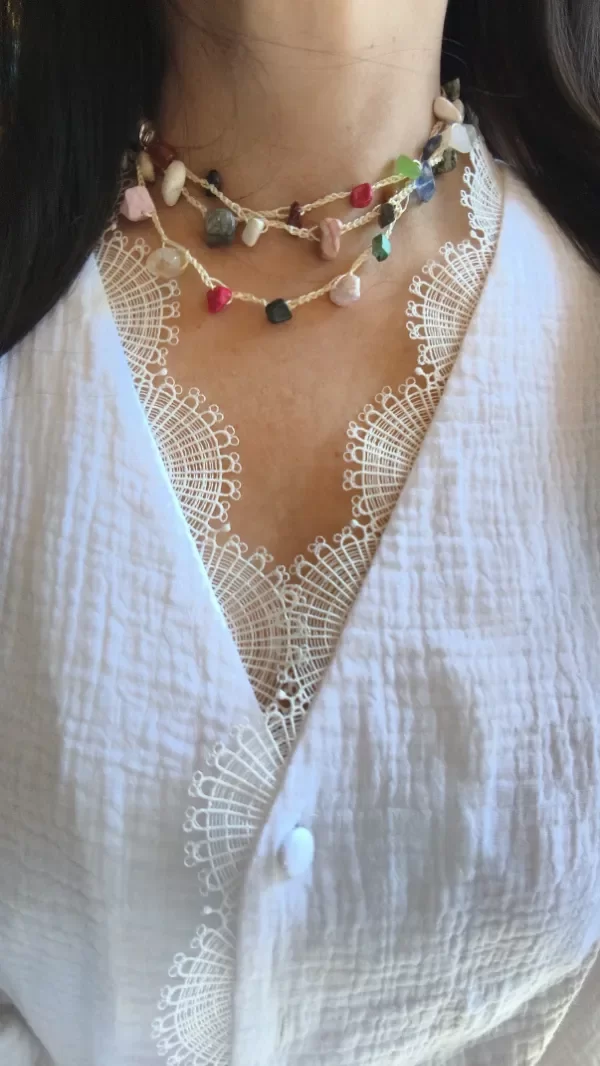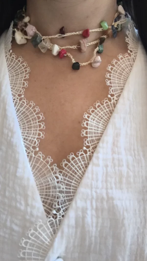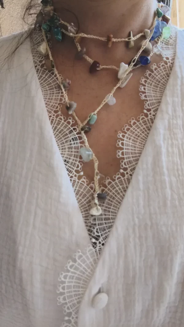 Collar de mix de piedras naturales . Confeccion artesanal tejido en crochet hilo de poliester ,
