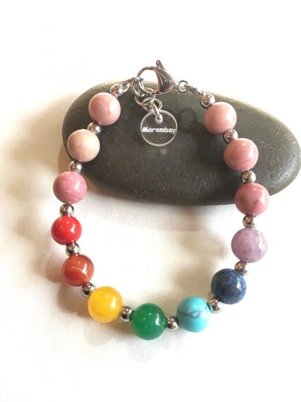 Pulsera piedra naturales Rodonita y de los 7 Chakras 8mm