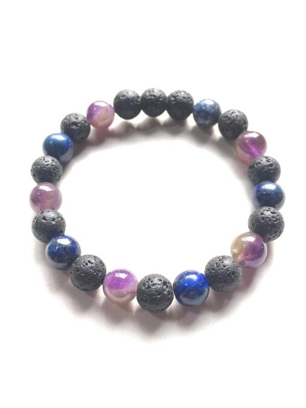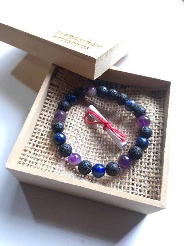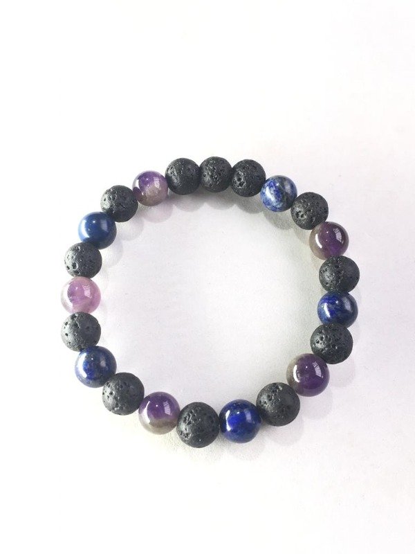 Pulsera de piedras naturales volcanicas .amatista y Lapislazuli elastica