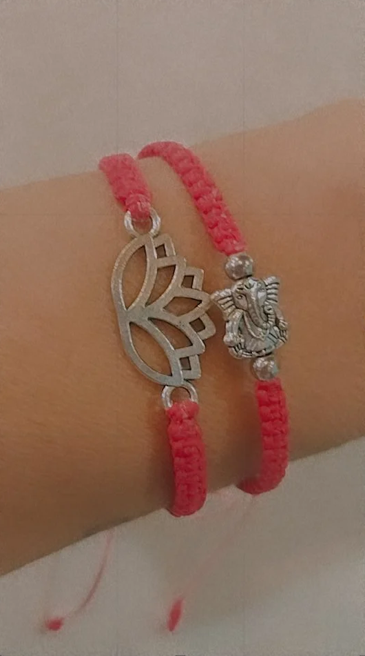 Pulsera roja en hilo rojo dije ganesha confección artesanal en macramé nudo corredizo